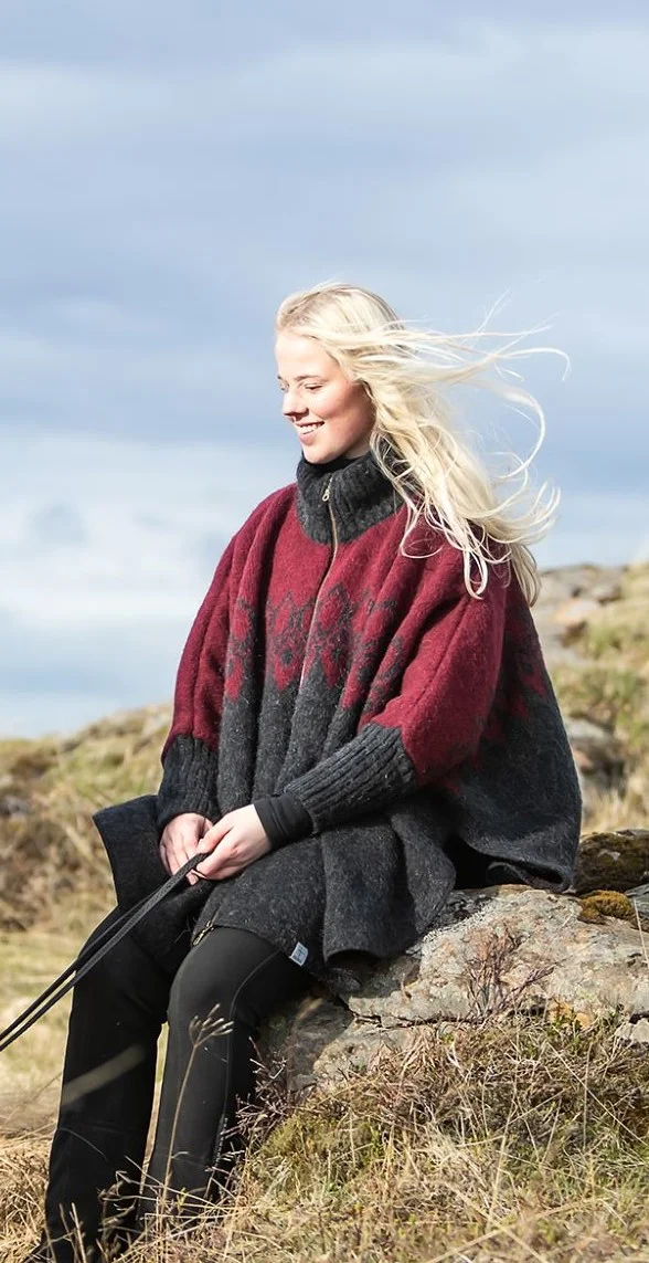 Islandshästspecialisten » För ryttaren » Ridjackor, kappor, västar mm » Isländsk Poncho Ísar Mörkröd