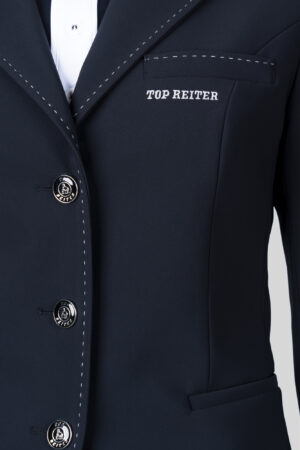 Top Reiter ”KOMMA” dam, vita tävlingsridbyxor är designade för att säkerställa ryttarens komfort och stil. Byxorna kännetecknas av ett högt, brett midjeband, med bälteshällor och dragkedja. Silikonsätet, det ogenomskinliga tekniska tyget och lycra-anklarna ger optimalt stöd och erbjuder en hög och bekväm bärkomfort. Byxorna har även två fickor med dragkedja.