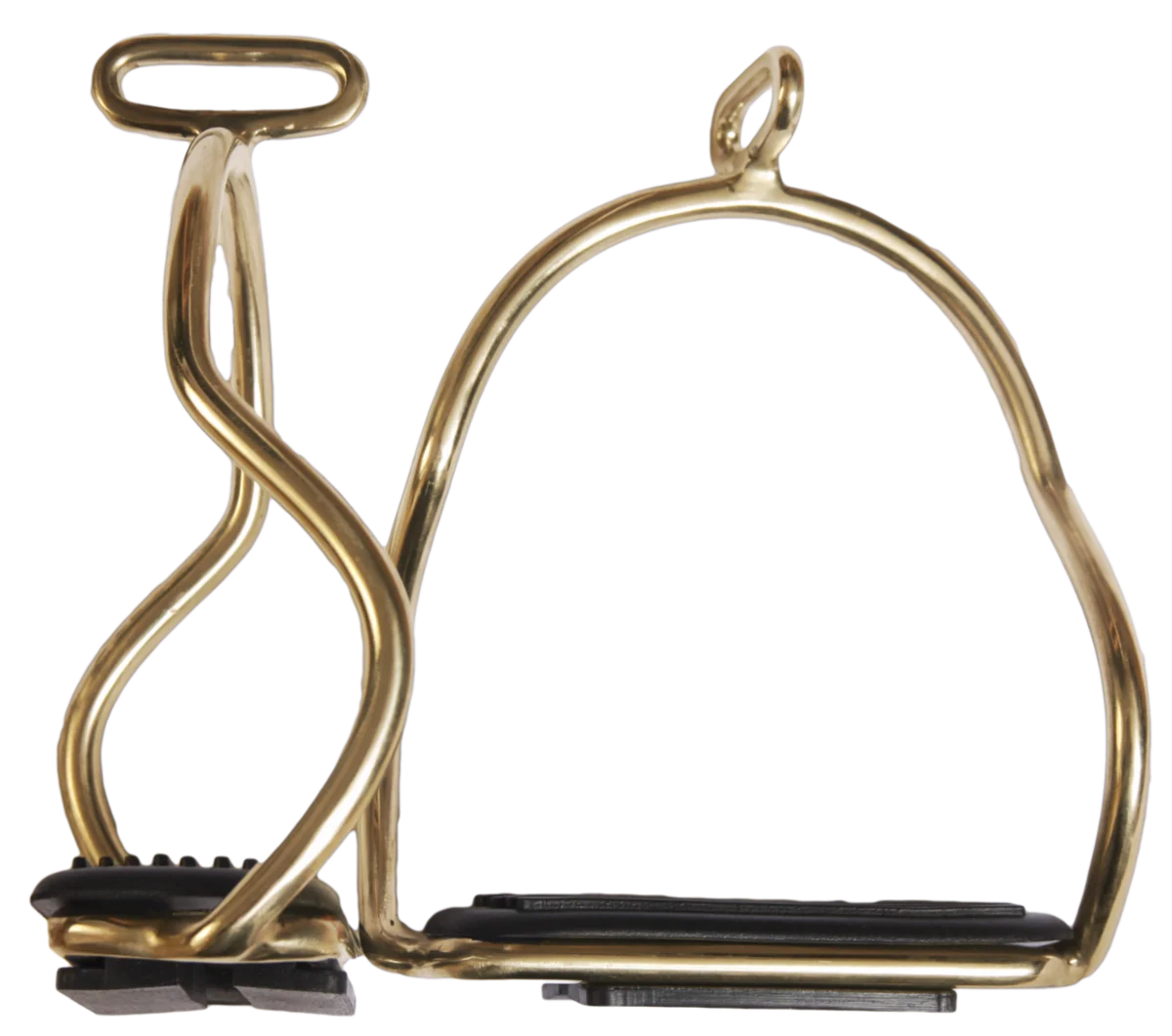 Dubbel-S säkerhetsstigbygel i rostfritt stål med gyllene yta. Gummiplattor med töltande hästar. Lätt, enkel och elegant design Guldfärgad rostfri finish Dubbel S säkerhetsform Lätt konstruktion...