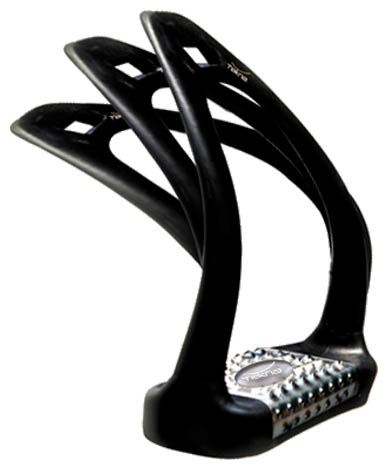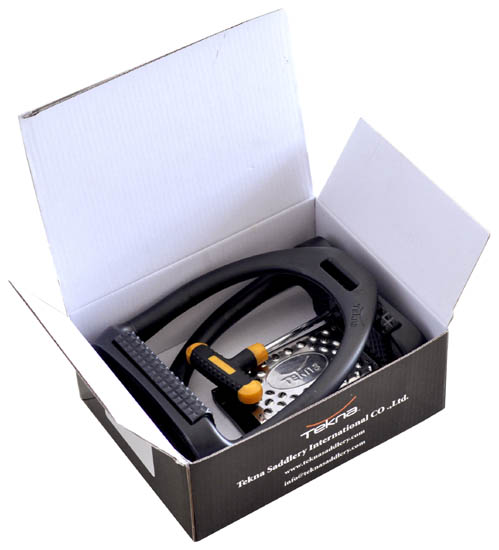 Tekna´s högteknologiska stigbygel “Flex-Tek” är ledbar på båda sidor och kommer med två olika stigbygelplattor. Ett med ett par plattor i gummi och ett par i rostfritt stål med grepp perfekt för vintern. En året runt modell!
