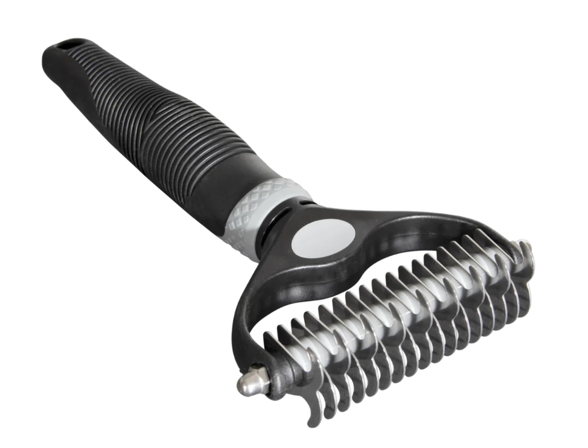 Med både en fin och grov sida är den särskilt lämplig för tjocka pälsar, där den effektivt tunnar ut och rengör pälsen på djupet.