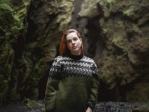 - Unik Isländsk Ull: Materialet är 100% isländsk fårull, uppskattad för sina naturliga egenskaper: den är varm, lätt och naturligt vattenavvisande.
